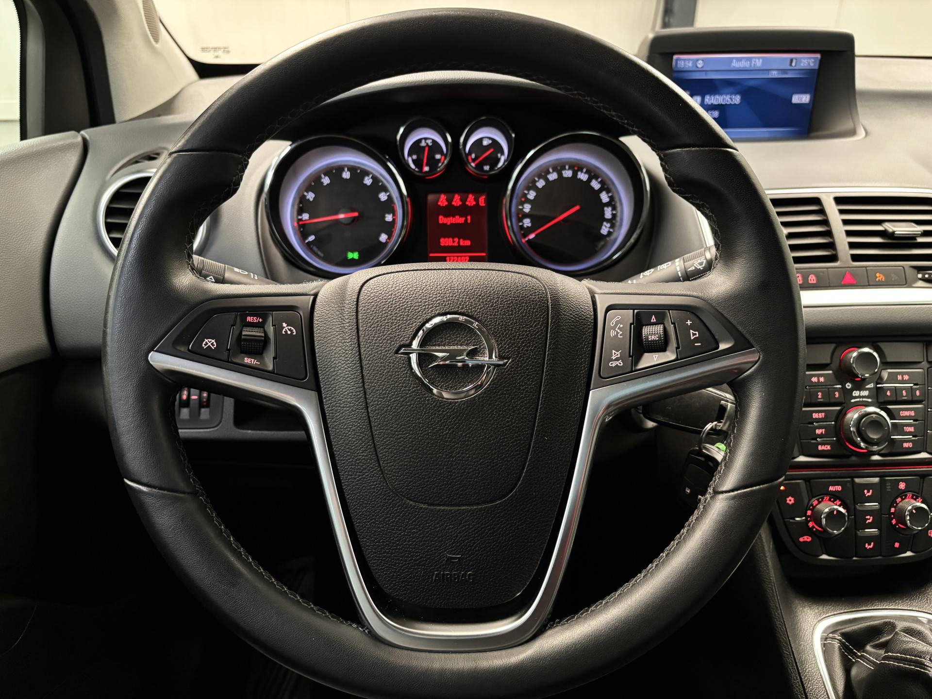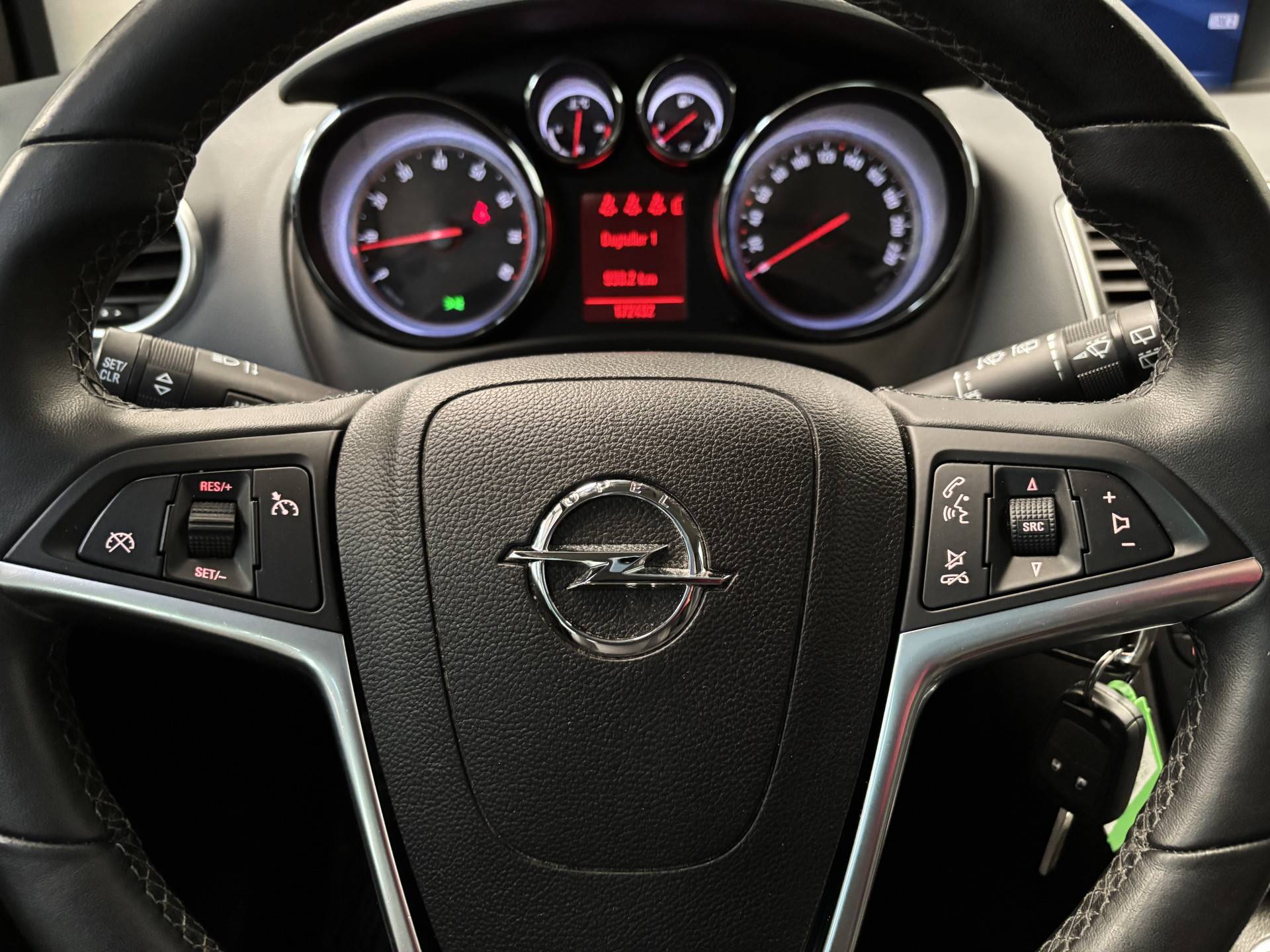 Een belangrijke veiligheidsvoorziening is de bediening van het audiosysteem en het in dashboard opgenomen navigatiesysteem, via knoppen op het stuur en middels spraakbediening. Het spreekt voor zich dat een auto als deze ook van automatische airconditioning is voorzien. De parkeersensoren waarschuwen wanneer u te krap inparkeert of dat ene paaltje niet hebt gezien. De elektronische systemen in deze Opel helpen u actief om comfortabeler te rijden. Een automatisch inschakelbare verlichting en een regensensor houden de omstandigheden onderweg in de gaten. De cruise control betekent gemak, comfort en zuinig rijden. De uitrusting van deze Opel is met buitentemperatuurmeter, automatisch dimmende binnenspiegel, lederen stuur, isofix-aansluiting, centrale deurvergrendeling met afstandsbediening en toerenteller behoorlijk compleet.