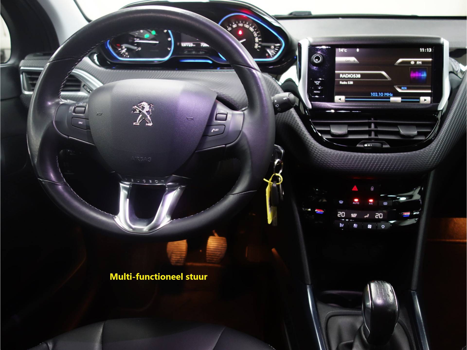 Muziek kunt u via het audiosysteem ook online beluisteren via bluetooth. De meegeleverde usb-aansluiting maakt het mogelijk devices af te spelen en op te laden. De climate control zorgt voor een prettige binnentemperatuur. Hoeveel ruimte u nog heeft bij het insteken? De parkeersensoren laten het weten! Da's gemakkelijk! De automatisch inschakelbare verlichting en regensensor zorgen dat onderweg automatisch de verlichting en de ruitenwissers worden ingeschakeld. Daarmee nemen ze u veel werk uit handen. Met cruise control rijdt u rustiger en meer ontspannen, en bovendien zuiniger. Deze Peugeot is voorzien van full map navigatiesysteem, buitentemperatuurmeter, automatisch dimmende binnenspiegel, lederen stuur, isofix-aansluiting en centrale deurvergrendeling met afstandsbediening.