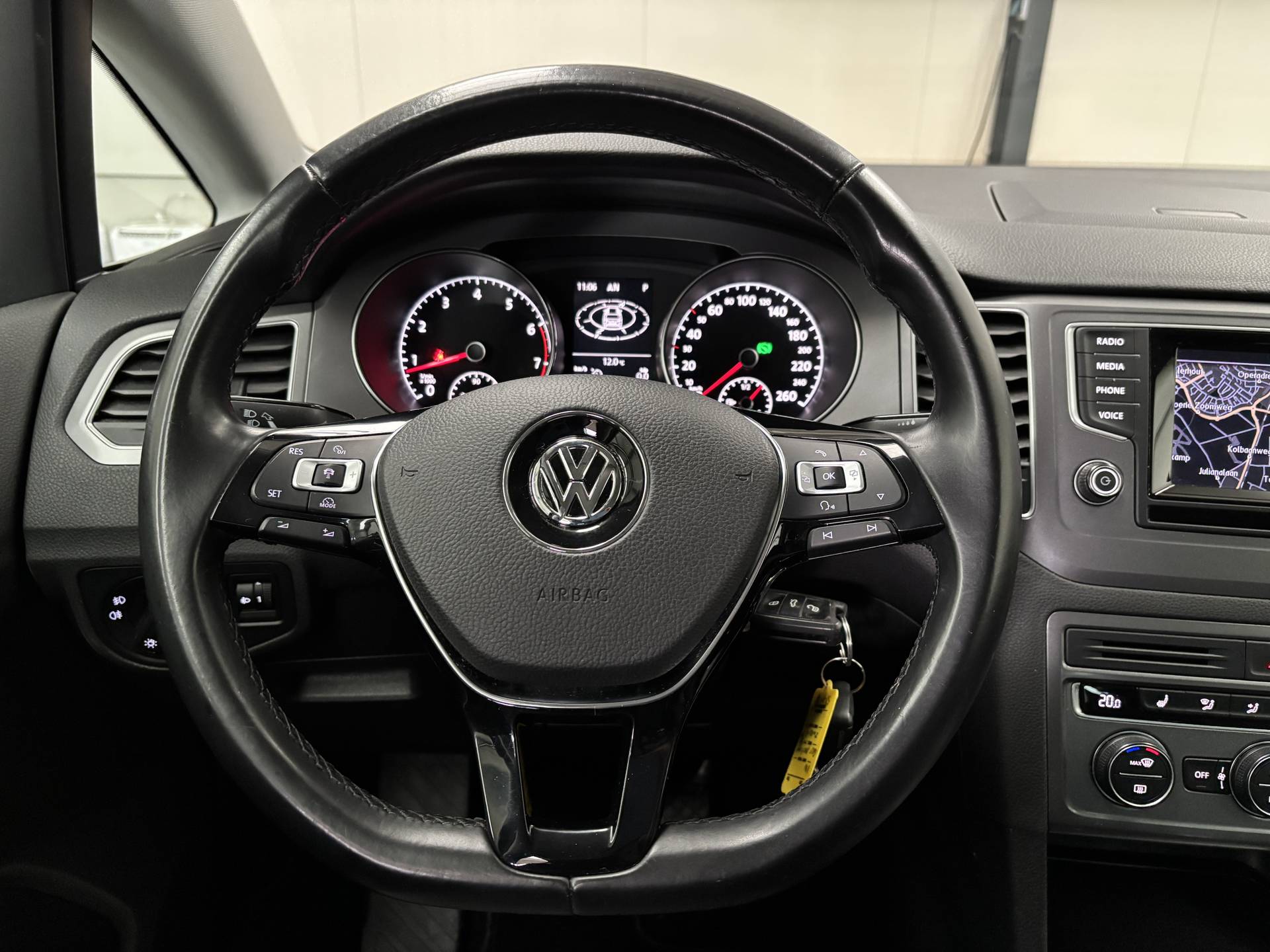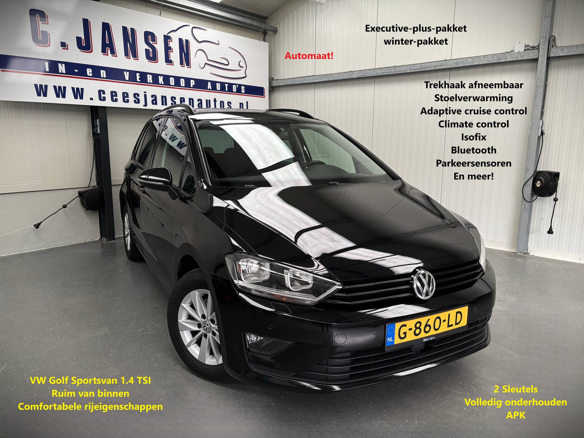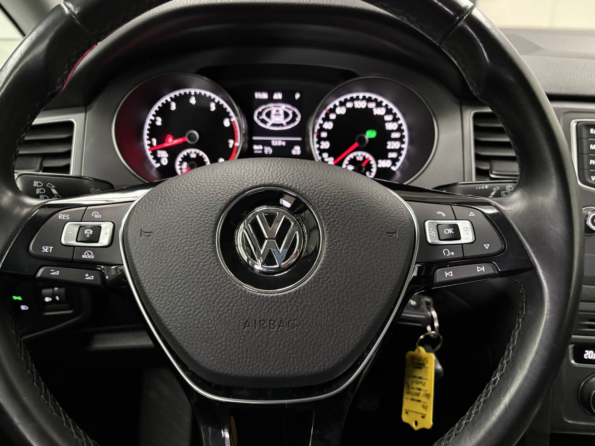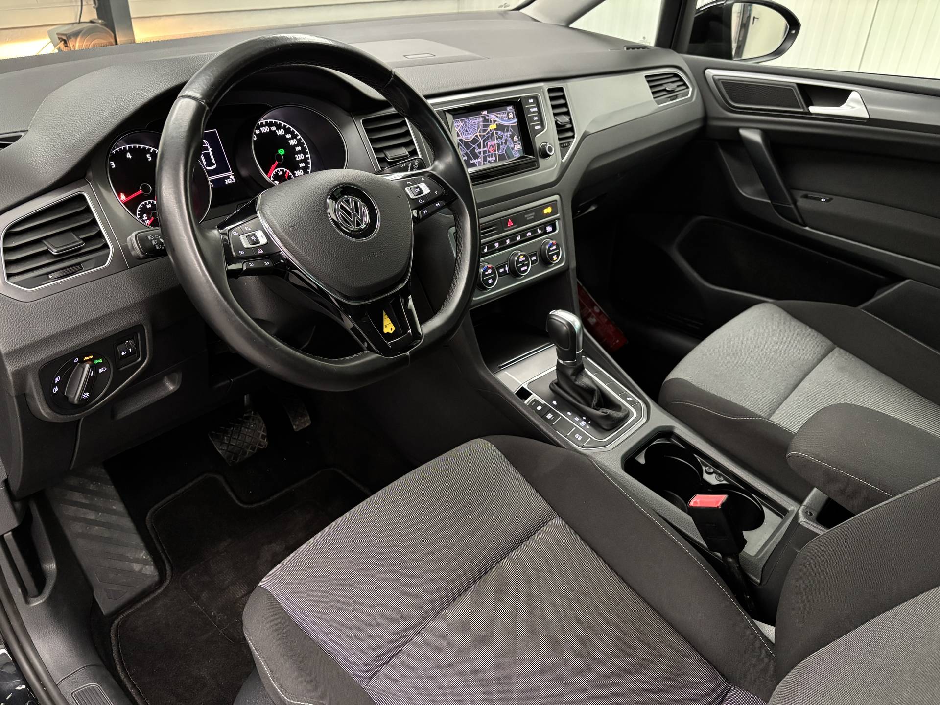 De Volkswagen Golf Sportsvan belichaamt de hoogste klasse, zichtbaar in zijn stijlvolle belijning en luxueuze binnenkant. Dit is zoals u van een typische Duitse auto kan verwachten. Het zijn de degelijkheid van de constructie en de doordachtheid van het ontwerp die ervoor zorgen dat een Volkswagen jarenlang begeerlijk blijft. Zoals deze Golf Sportsvan, bijvoorbeeld. De aandrijving komt voor rekening van een benzinemotor en een automatische transmissie. De verwarmbare voorstoelen zijn een weldaad voor rug en schouders. De comfortstoelen zorgen voor precies de juiste zit, hoe lang de rit ook is. Tot de voorzieningen van deze auto behoren 15 inch lichtmetalen velgen, warmtewerend glas, adaptieve mistlampen, in delen neerklapbare achterbank, verwarmde ruitensproeiers en snelheidsafhankelijke stuurbekrachtiging. Adaptive cruise control houdt de ingestelde snelheid vast en houdt afstand tot het voertuig voor u. Als u regelmatig met een aanhanger of een fietsendrager op pad bent, is de afneembare trekhaak een praktische extra. Onderweg kunt u veilig genieten van het audiosysteem en het navigatiesysteem met harde schijf. Want in deze Volkswagen bedient u ze vanaf het stuurwiel of met uw stem. Het spreekt voor zich dat een auto als deze ook van electronic climate control is voorzien. Hoeveel ruimte u nog heeft bij het insteken? De parkeersensoren laten het weten! Da's gemakkelijk! De uitrusting van deze auto is met regensensor, automatisch dimmende binnenspiegel, lederen stuur en versnellingspook, isofix-aansluiting, centrale deurvergrendeling met afstandsbediening en boordcomputer behoorlijk compleet. Pragmatisch en veilig als deze auto is, beschikt hij over diverse veiligheidssystemen. De veiligheid van deze auto wordt verder verhoogd door hill hold functie en bandenspanningcontrolesysteem. We kunnen ons voorstellen dat u een proefrit wilt maken met deze Volkswagen. Belt u ons snel?